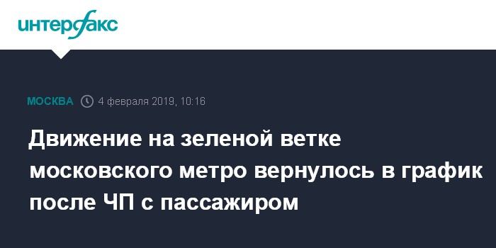 Движение на зеленой ветке московского метро вернулось в график после ЧП с пассажиром