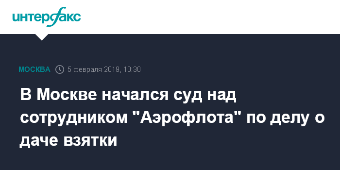 В Москве начался суд над сотрудником "Аэрофлота" по делу о даче взятки