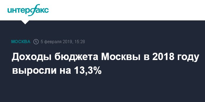 Доходы бюджета Москвы в 2018 году выросли на 13,3%