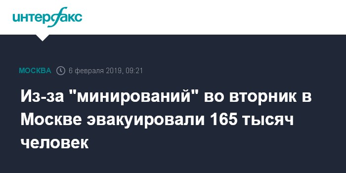 Из-за "минирований" во вторник в Москве эвакуировали 165 тысяч человек