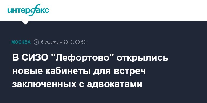 Москва. 6 февраля. INTERFAX.RU - Два новых кабинета для адвокатов открылись в московском следственном изоляторе "Лефортово" после ремонта. Об этом сообщил "Интерфаксу" в среду ответственный секретарь Общественной наблюдательной комиссии Москвы Иван Мельников.