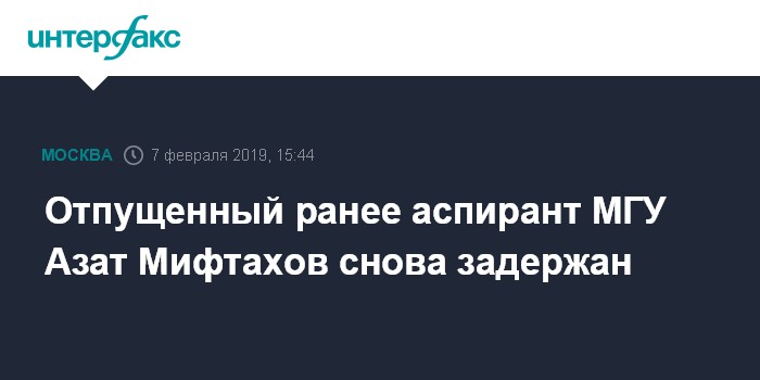 Отпущенный ранее аспирант МГУ Азат Мифтахов снова задержан