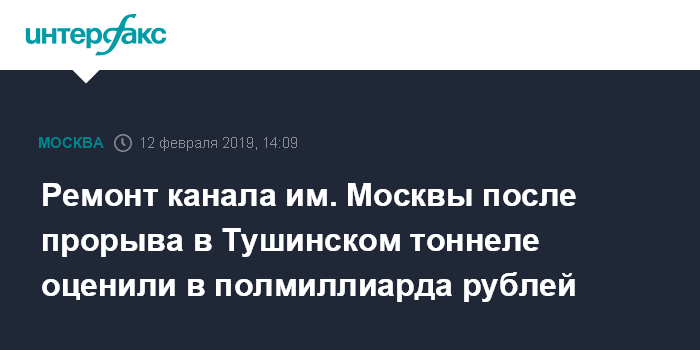 Москва. 12 февраля. INTERFAX.RU - Максимальная стоимость восстановительных работ аварийного участка канала им. Москвы над Тушинским тоннелем в Москве может составить 500 млн рублей, заявил руководитель ФГБУ "Канал имени Москвы" Герман Елянюшкин.