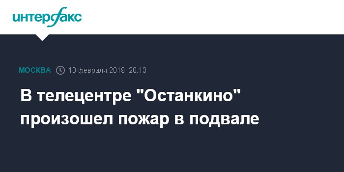 Москва. 13 февраля. INTERFAX.RU - В телецентре "Останкино" в Москве произошел пожар в подвале здания, сообщил "Интерфаксу" в среду информированный источник.