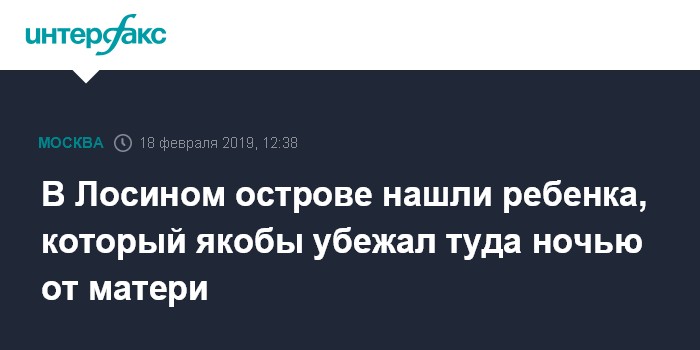Москва. 18 февраля. INTERFAX.RU - Малолетний ребенок, который пропал в национальном парке Лосиный остров, был найден, сообщила представитель столичного главка Следственного комитета (СК) Юлия Иванова.