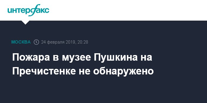 Москва. 24 февраля. INTERFAX.RU - Пожарные не обнаружили признаков возгорания в государственном музее А.С.Пушкина в Москве, сообщили "Интерфаксу" в воскресенье в пресс-службе столичного главка МЧС.