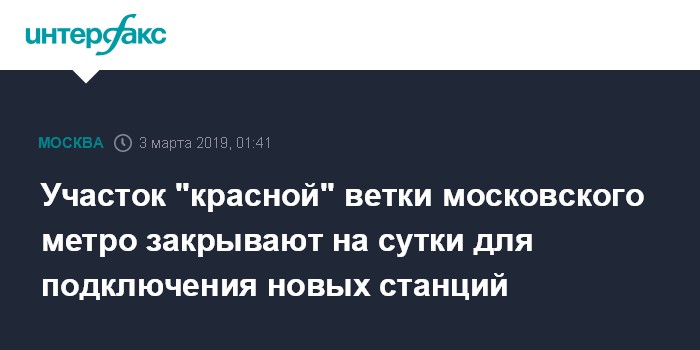 Участок "красной" ветки московского метро закрывают на сутки для подключения новых станций