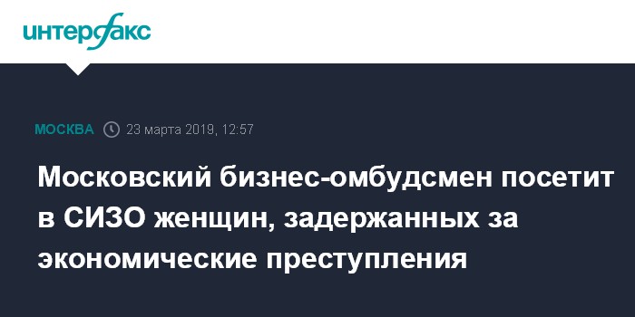 Московский бизнес-омбудсмен посетит в СИЗО женщин, задержанных за экономические преступления
