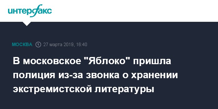 В московское "Яблоко" пришла полиция из-за звонка о хранении экстремистской литературы