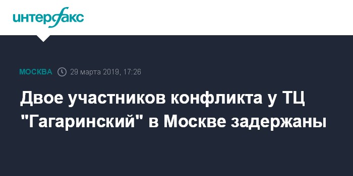 Москва. 29 марта. INTERFAX.RU - Двое участников конфликта рядом со станцией Московского центрального кольца (МЦК) и торгово-развлекательным центром "Гагаринский" задержаны, сообщили "Интерфаксу" в пресс-службе столичного главка МВД.