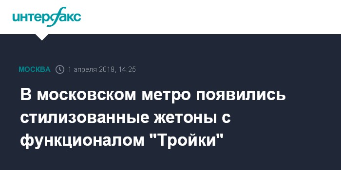 Москва. 1 апреля. INTERFAX.RU - В продажу в сувенирных магазинах Московского метрополитена поступили жетоны, по которым можно оплатить проезд в подземке, сообщили "Интерфаксу" в понедельник в пресс-службе подземки.