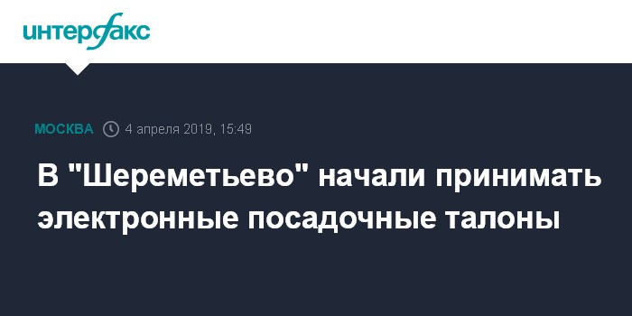 Москва. 4 апреля. INTERFAX.RU - Аэропорт "Шереметьево" с четверга начал обслуживать пассажиров с электронными посадочными талонами на внутренних воздушных линиях.