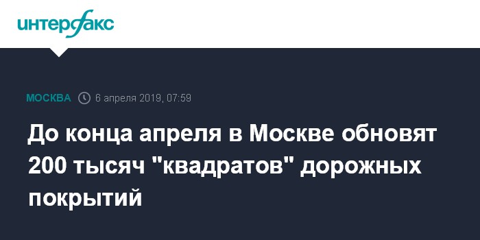До конца апреля в Москве обновят 200 тысяч "квадратов" дорожных покрытий