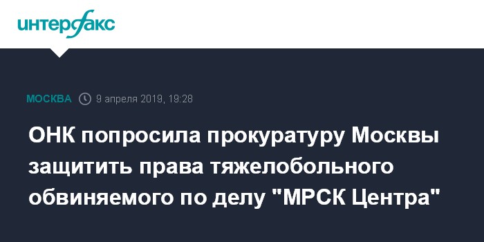 ОНК попросила прокуратуру Москвы защитить права тяжелобольного обвиняемого по делу "МРСК Центра"