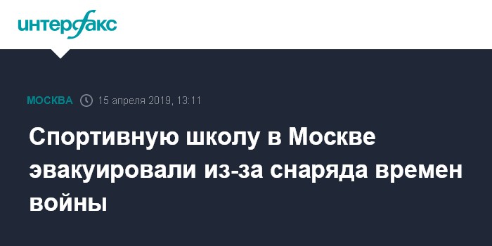 Москва. 15 апреля. INTERFAX.RU - Около 200 человек эвакуировали из спортивной школы на юго-западе Москвы из-за обнаруженного поблизости боеприпаса времен Великой Отечественной войны, сообщил "Интерфаксу" в понедельник информированный источник.