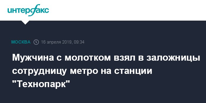 "Поступила информация о нападении мужчины с молотком на сотрудницу метро на станции "Технопарк",- сказал собеседник агентства.