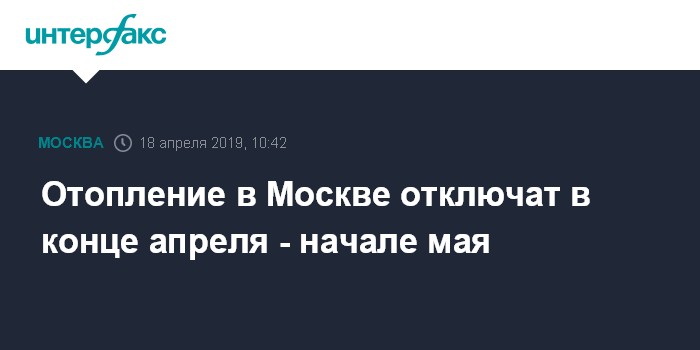 Москва. 18 апреля. INTERFAX.RU - Отопление в московских квартирах и нежилых зданиях отключат в конце апреля - начале мая, сообщил в четверг заммэра столицы по вопросам ЖКХ и благоустройства Петр Бирюков.