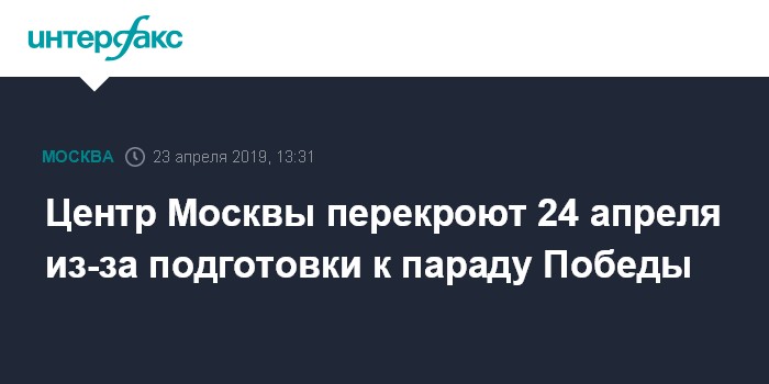 Центр Москвы перекроют 24 апреля из-за подготовки к параду Победы