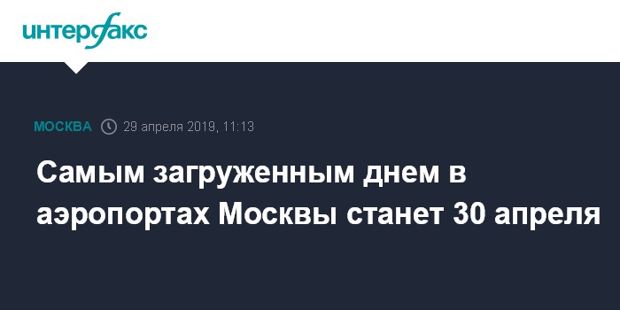 Самым загруженным днем в аэропортах Москвы станет 30 апреля
