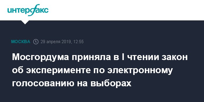 Москва. 29 апреля. INTERFAX.RU - Мосгордума в понедельник приняла в первом чтении законопроект "О проведении эксперимента по организации и осуществлению дистанционного электронного голосования на выборах депутатов Мосгордумы седьмого созыва", передал корреспондент "Интерфакса".