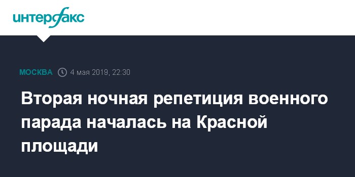 Москва. 4 мая. INTERFAX.RU - Вторая ночная репетиция парада Победы, в которой принимают участие пешие парадные расчеты и колонны военной техники, началась на Красной площади.