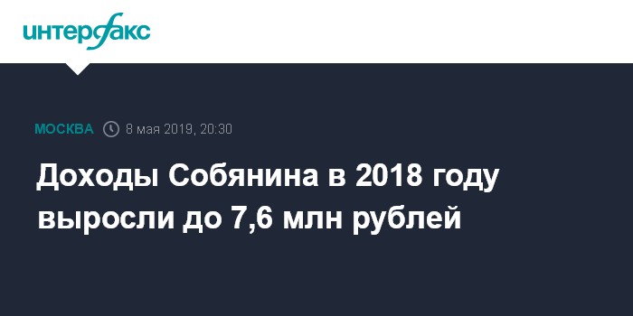 Доходы Собянина в 2018 году выросли до 7,6 млн рублей