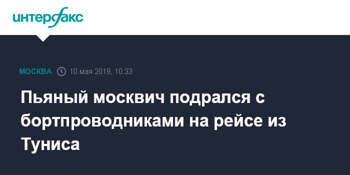 Пьяный москвич подрался с бортпроводниками на рейсе из Туниса