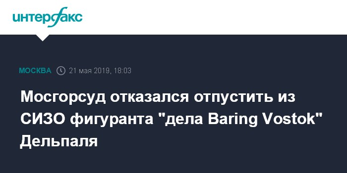 Мосгорсуд отказался отпустить из СИЗО фигуранта "дела Baring Vostok" Дельпаля