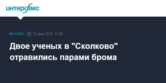 Москва. 22 мая. INTERFAX.RU - Небольшой инцидент с парами брома произошел у одного из резидентов "Сколково", за медпомощью обратились двое ученых.