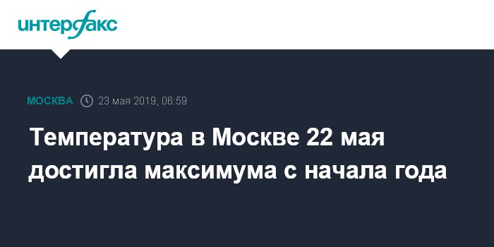 Москва. 23 мая. INTERFAX.RU - По уточненным данным, на базовой столичной метеостанции на ВДНХ в среду, 22 мая температура воздуха достигла 26,4 градусов, что стало максимальным значением с начала 2019 года, сообщили "Интерфаксу" в метеобюро Москвы и области.
