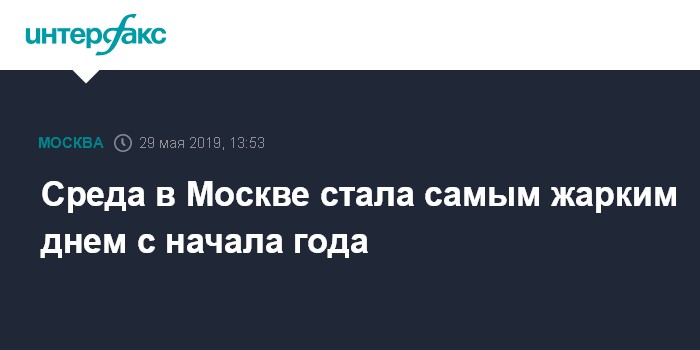 Москва. 29 мая. INTERFAX.RU - Температура воздуха на базовой столичной метеостанции к 13:00 среды достигла 28,7 градусов жары, что стало максимальным значением с начала 2019 года, сообщили "Интерфаксу" в метеобюро Москвы и области.