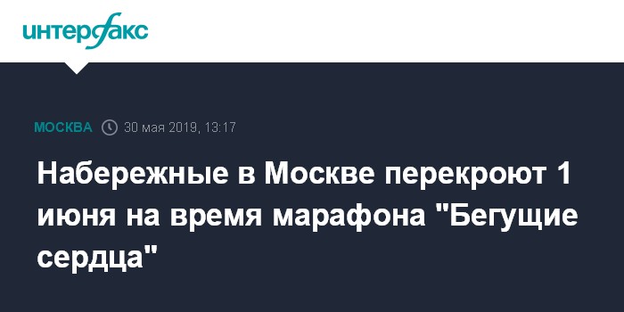 Набережные в Москве перекроют 1 июня на время марафона "Бегущие сердца"