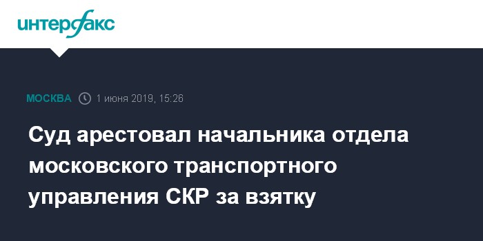 Суд арестовал начальника отдела московского транспортного управления СКР за взятку