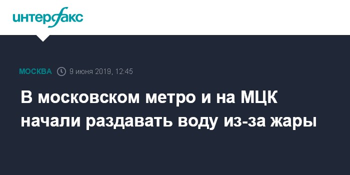 Москва. 9 июня. INTERFAX.RU - В Москве на станциях метро и Московского центрального кольца начали раздавать воду в связи с жарким днем, сообщает в воскресенье Московский метрополитен.