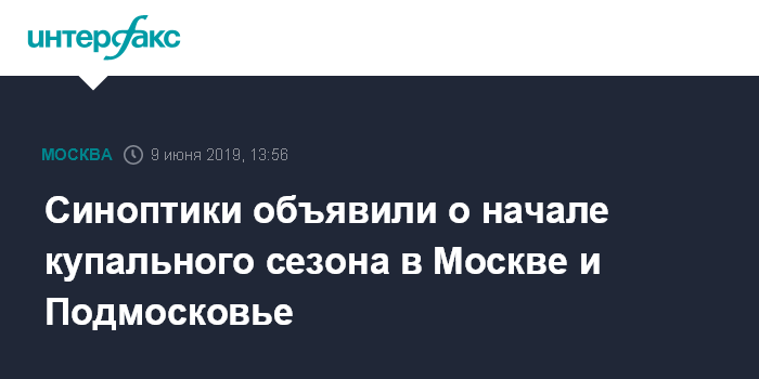 Москва. 9 июня. INTERFAX.RU - Научный руководитель Гидрометцентра России Роман Вильфанд сообщил о начале купального сезона в Московском регионе.