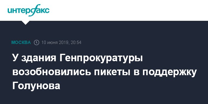 Как передает корреспондент "Интерфакса", несколько человек с плакатами в поддержку Голунова вышли к зданию Генпрокуратуры в центре Москвы. Они встали в одиночные пикеты, полиция их не задерживает.