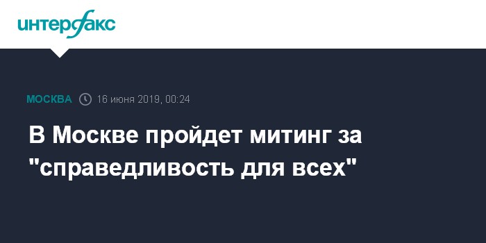 Москва. 16 июня. INTERFAX.RU - Согласованный с городскими властями митинг под лозунгом "Закон и справедливость для всех" пройдет в центре Москвы в воскресенье.