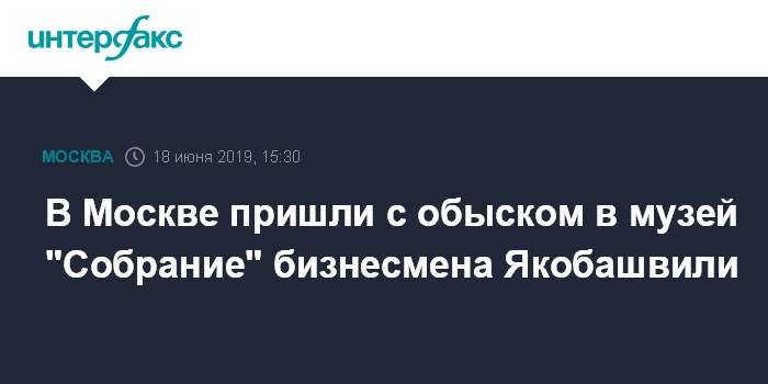 Москва. 18 июня. INTERFAX.RU - В Москве в музее "Собрание" на Солянке проходит обыск, подтвердил "Интерфаксу" владелец музея, бизнесмен Давид Якобашвили.