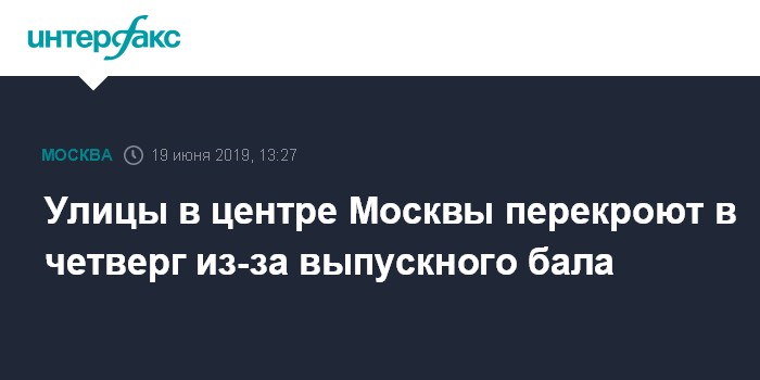 Москва. 19 июня. INTERFAX.RU - Несколько улиц в центре Москвы вечером 20 июня и в ночь на 21 июня будут временно перекрыты для движения транспорта в связи с проведением школьных выпускных вечеров, сообщили "Интерфаксу" в Центре организации дорожного движения столицы в среду.