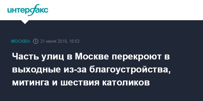 Часть улиц в Москве перекроют в выходные из-за благоустройства, митинга и шествия католиков