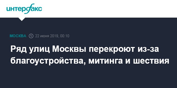 Москва. 22 июня. INTERFAX.RU - В эти выходные в связи с благоустройством и проведением мероприятий для движения транспорта будут закрыты ряд улиц в центре столицы, сообщили "Интерфаксу" в Центре организации дорожного движения Москвы.
