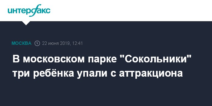 Москва. 22 июня. INTERFAX.RU - Три ребенка в столичном парке "Сокольники" упали с аттракциона, сообщили "Интерфаксу" в пресс-службе московского главка полиции.