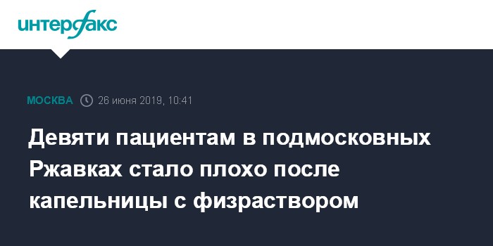 Девяти пациентам в подмосковных Ржавках стало плохо после капельницы с физраствором