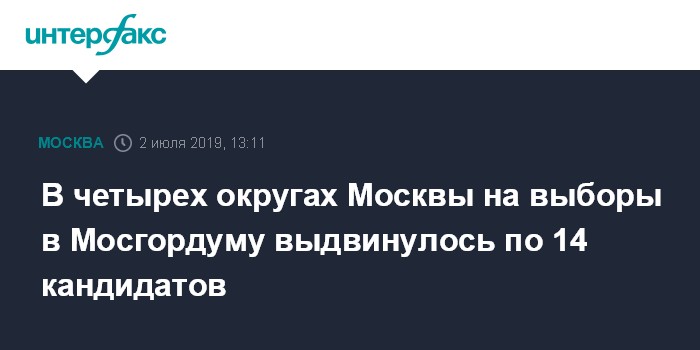 В четырех округах Москвы на выборы в Мосгордуму выдвинулось по 14 кандидатов