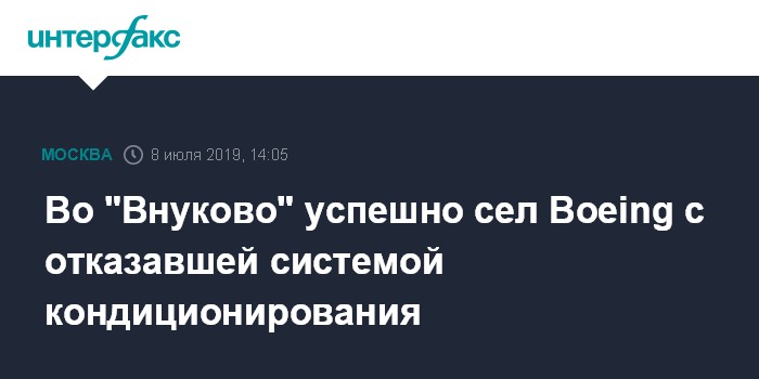 Во "Внуково" успешно сел Boeing с отказавшей системой кондиционирования