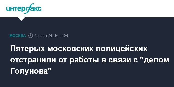 Москва. 10 июля. INTERFAX.RU - Пятерых полицейских из УВД по Западному административному округу (ЗАО) Москвы отстранили от выполнения обязанностей в связи с делом журналиста "Медузы" Ивана Голунова.