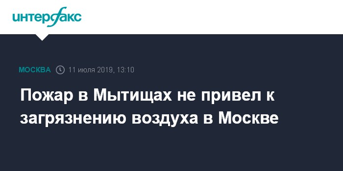 Москва. 11 июля. INTERFAX.RU - Автоматические станции контроля загрязнения атмосферного воздуха, расположенные в Москве, не зафиксировали превышений загрязняющих веществ в связи с пожаром в Мытищах, сообщили "Интерфаксу" в "Мосэкомониторинге".