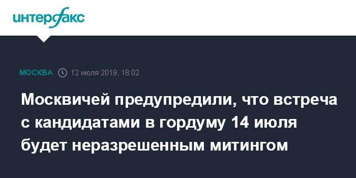 Москвичей предупредили, что встреча с кандидатами в гордуму 14 июля будет неразрешенным митингом
