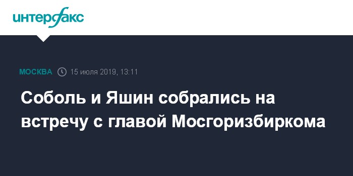 Москва. 15 июля. INTERFAX.RU - Независимые кандидаты в Мосгордуму Любовь Соболь (43 округ), Илья Яшин (45 округ) и Иван Жданов (8 округ) в своих социальных сетях объявили, что в понедельник придут на прием к главе Мосгоризбиркома Валентину Горбунову.