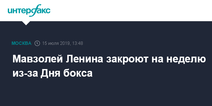 Мавзолей Ленина закроют на неделю из-за Дня бокса